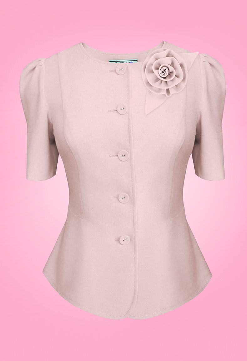 MÔ TẢ SẢN PHẨM: Áo kiểu cổ tròn, kết hoa, tay ngắn xếp ly.