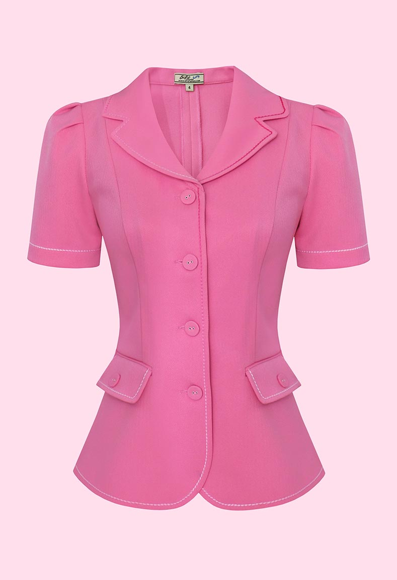MÔ TẢ SẢN PHẨM: Áo vest cổ đanton một lớp, tay ngắn, túi mổ viền, dăn chỉ nổi 3D, kết nút xinh.