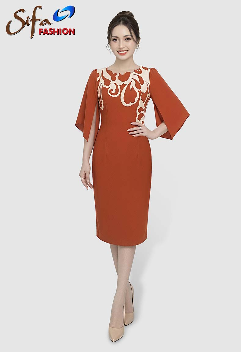 MÔ TẢ SẢN PHẨM: Đầm cổ lượn, tay lở xẻ, dáng ôm. Đính đá nghệ thuật