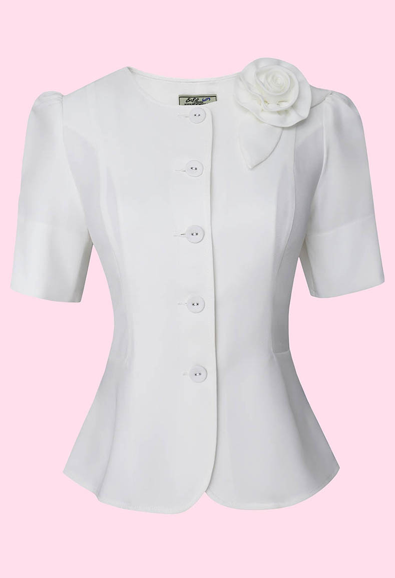 MÔ TẢ SẢN PHẨM: Áo kiểu cổ tròn, kết hoa, tay ngắn xếp ly.