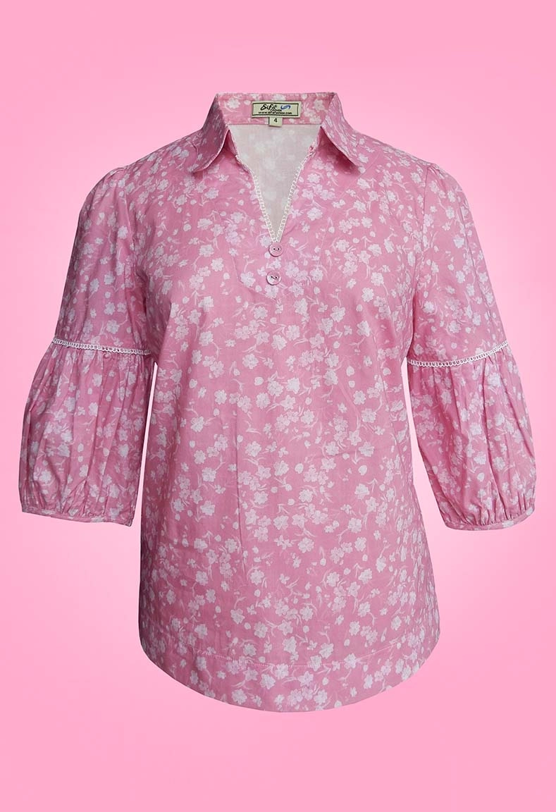 MÔ TẢ SẢN PHẨM: Áo cổ sơ mi cổ lượn, tay lỡ dáng lồng đèn, đính nút xinh.
