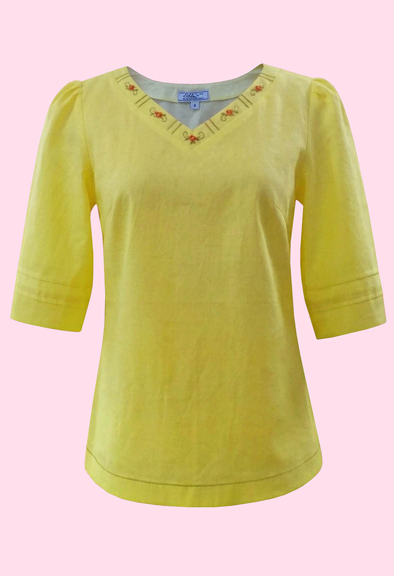 MÔ TẢ SẢN PHẨM: Áo cổ tim thêu điệu đà tôn nét thanh mảnh cho chiếc cổ. Form dáng suông vừa che khuyết điểm tạo nét thon gọn cho người mặc