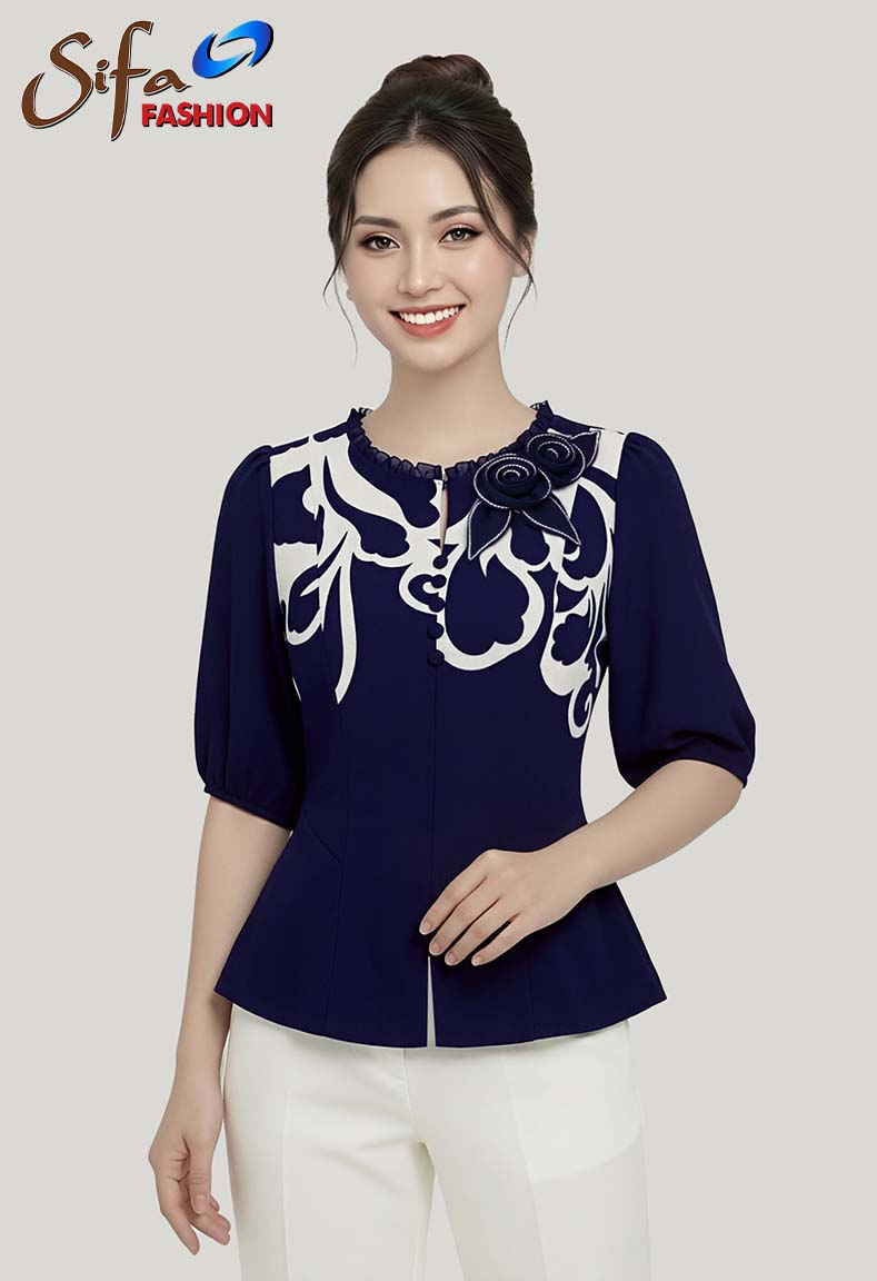 MÔ TẢ SẢN PHẨM: Chiếc áo cổ tròn với thiết kế họa tiết bèo tinh tế, điểm xuyến thêm bèo nhún kết hợp đính hoa 3D nghệ thuật tạo nên vẻ đẹp nghệ thuật độc đáo. Phần tay áo phồng vừa thanh thoát lại vừa nữ tính, mang đến sự thoải mái và phong cách nổi bật cho người mặc.