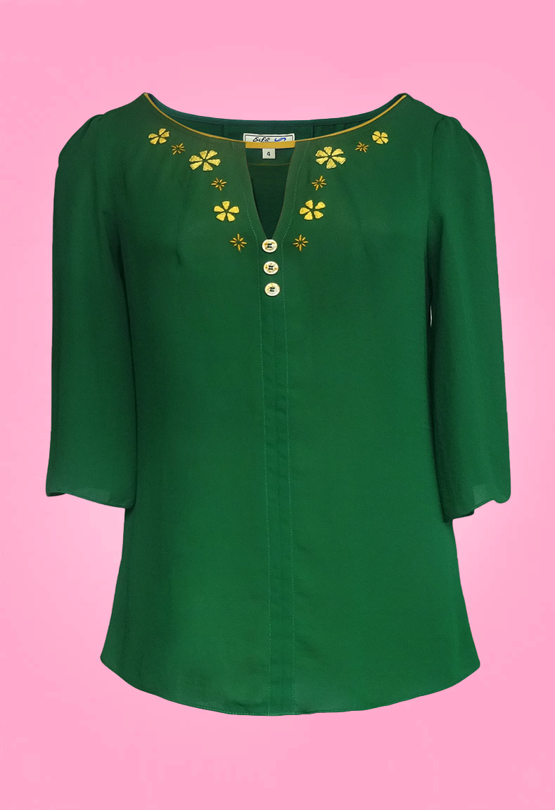 MÔ TẢ SẢN PHẨM: Áo cổ tròn xẻ V, tay lỡ xẻ cách điệ, thêu hoa nhỏ xinh