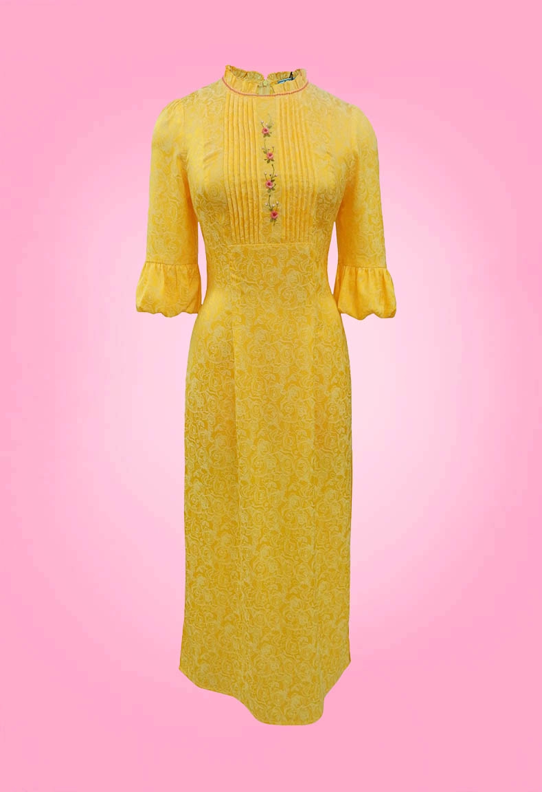 MÔ TẢ SẢN PHẨM: Áo dài cách tân cổ tròn bèo, tay dáng lồng đền, thêu hoa nhỏ xinh.