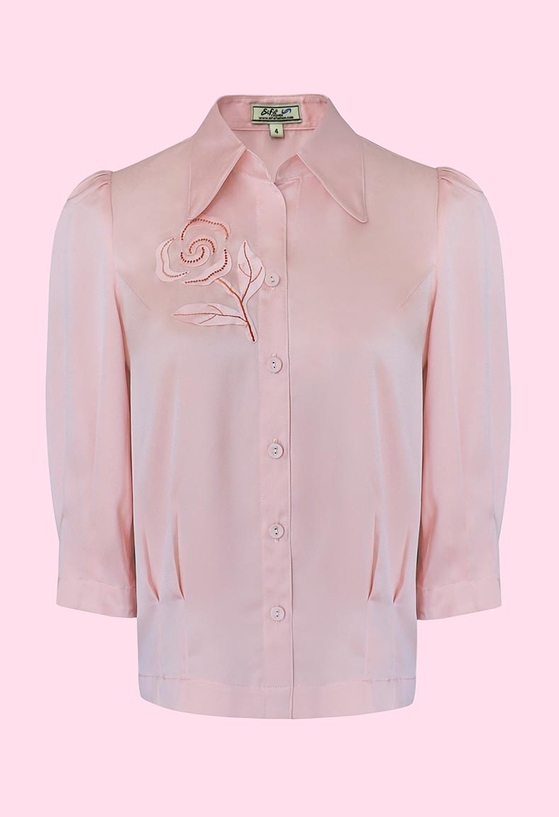 MÔ TẢ SẢN PHẨM: Áo sơ mi tay lỡ bo lai chạy ly, bo lai, thêu đắp hoa trẻ trung