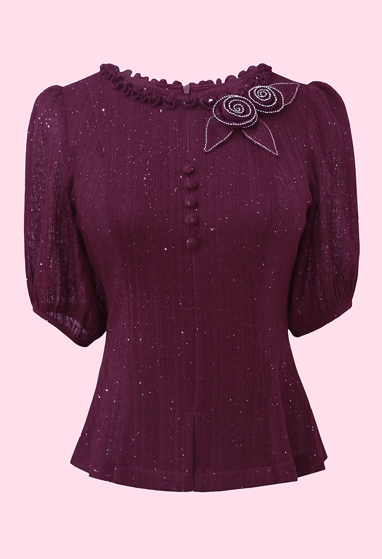MÔ TẢ SẢN PHẨM: Áo được thiết kế cổ tròn xẻ V sang trọng và thanh lịch, tay ngắn phồng tạo cảm giác thoải mái và dễ chịu. Điểm nhấn đặc biệt là chi tiết đính hoa nghệ thuật mang lại nét sang trọng, duyên dáng cho người mặc