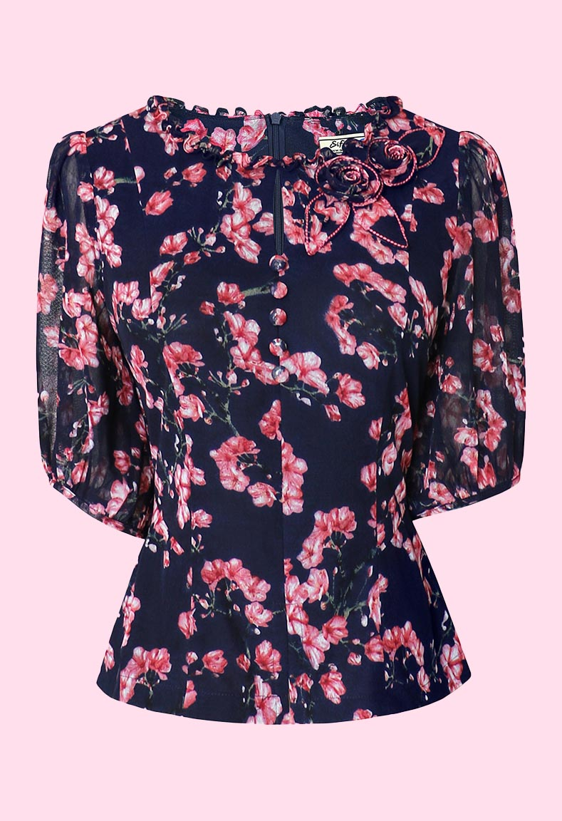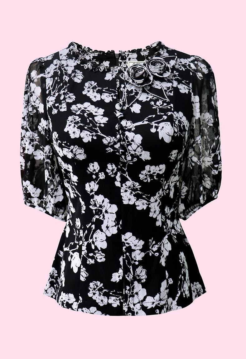 MÔ TẢ SẢN PHẨM: Áo được thiết kế cổ tròn họa tiết bèo thanh lịch. Điểm nhấn đặc biệt là chi tiết đính hoa nghệ thuật mang lại nét sang trọng, duyên dáng cho người mặc