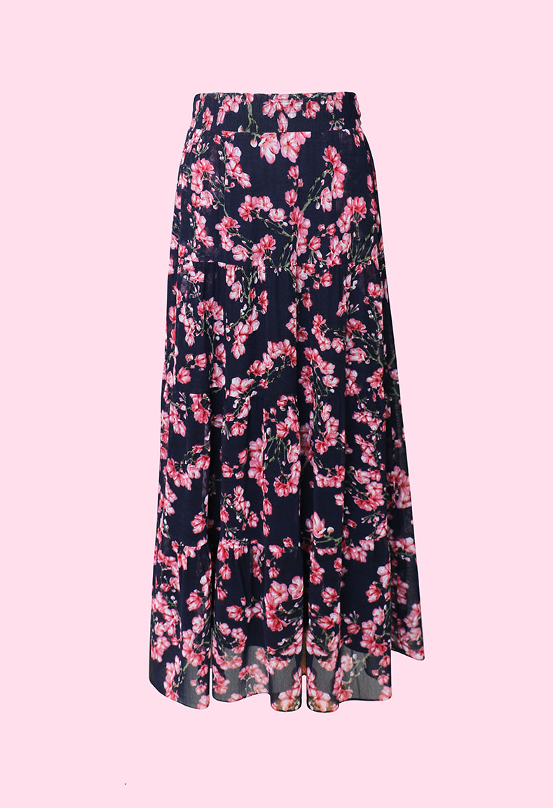 Bộ áo cổ tròn tay phồng & váy hoa