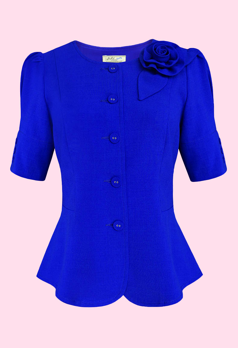 MÔ TẢ SẢN PHẨM: Áo kiểu cổ tròn, kết hoa, tay ngắn xếp ly.