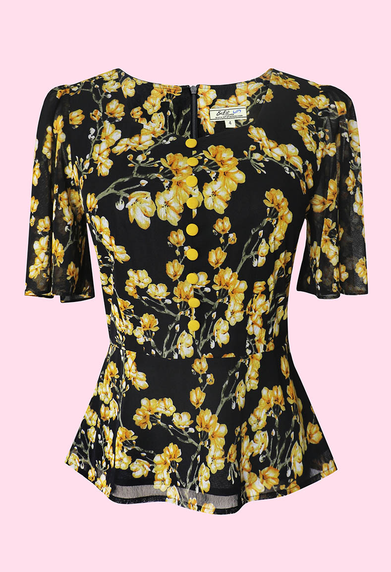 MÔ TẢ SẢN PHẨM: Áo được thiết kế cổ vuông tim trẻ trung và thanh lịch, tay ngắn loe tạo cảm giác thoải mái và dễ chịu. Điểm nhấn đặc biệt là chi tiết kết nút tinh tế, mang lại nét xinh xắn, duyên dáng cho người mặc.
