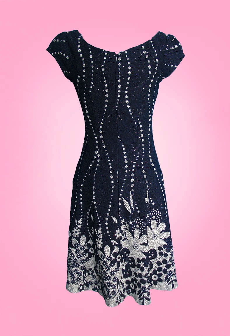 MÔ TẢ SẢN PHẨM: Đầm thun in hoa cổ ngôi sao được thiết kế điệu đà khoe vòng cổ xinh, kết hợp cùng chi tiết thêu chỉ gân 3D nổi bật là điểm nhấn ấn tượng cho sản phẩm. Hoa văn bố trí sáng tạo tăng tính thẩm mỹ. Dáng đầm suông được thiết kế che khuyết điểm vùng bụng. Tay lỡ, cửa tay xẻ V. Thân đầm lót thun thoải mái kín đáo. Dây kéo sau dài thoải mái khi mặc.