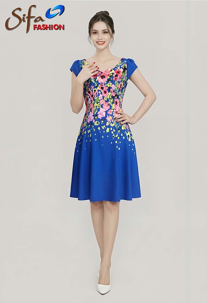 MÔ TẢ SẢN PHẨM: Đầm thun xốp cổ lượn dáng tùng xoè tay ngắn. Chi tiết cổ được thiết kế lượn nhẹ nhàng khoe trọn vòng cổ quyến rũ. Hoa văn in được sắp đặt khéo léo tạo nét đặt trưng sản phẩm. Đỉnh tay nhún với cửa tay bèo xoè xinh xắn. Bên trong lót thun co giãn thoải mái. Dây kéo sau dài dễ dàng thuận tiện khi mặc.