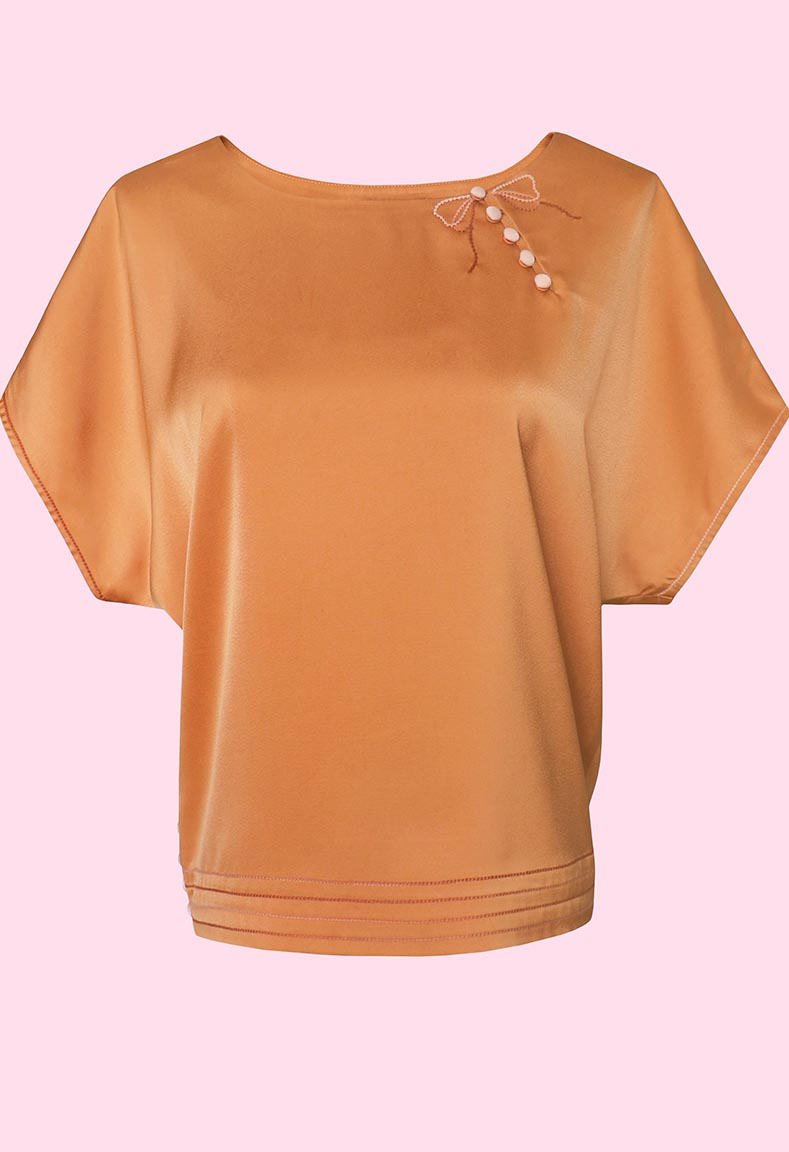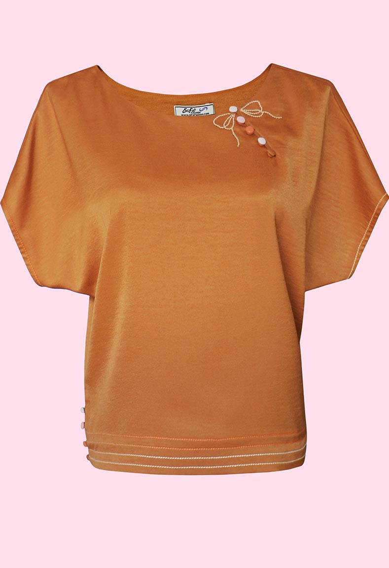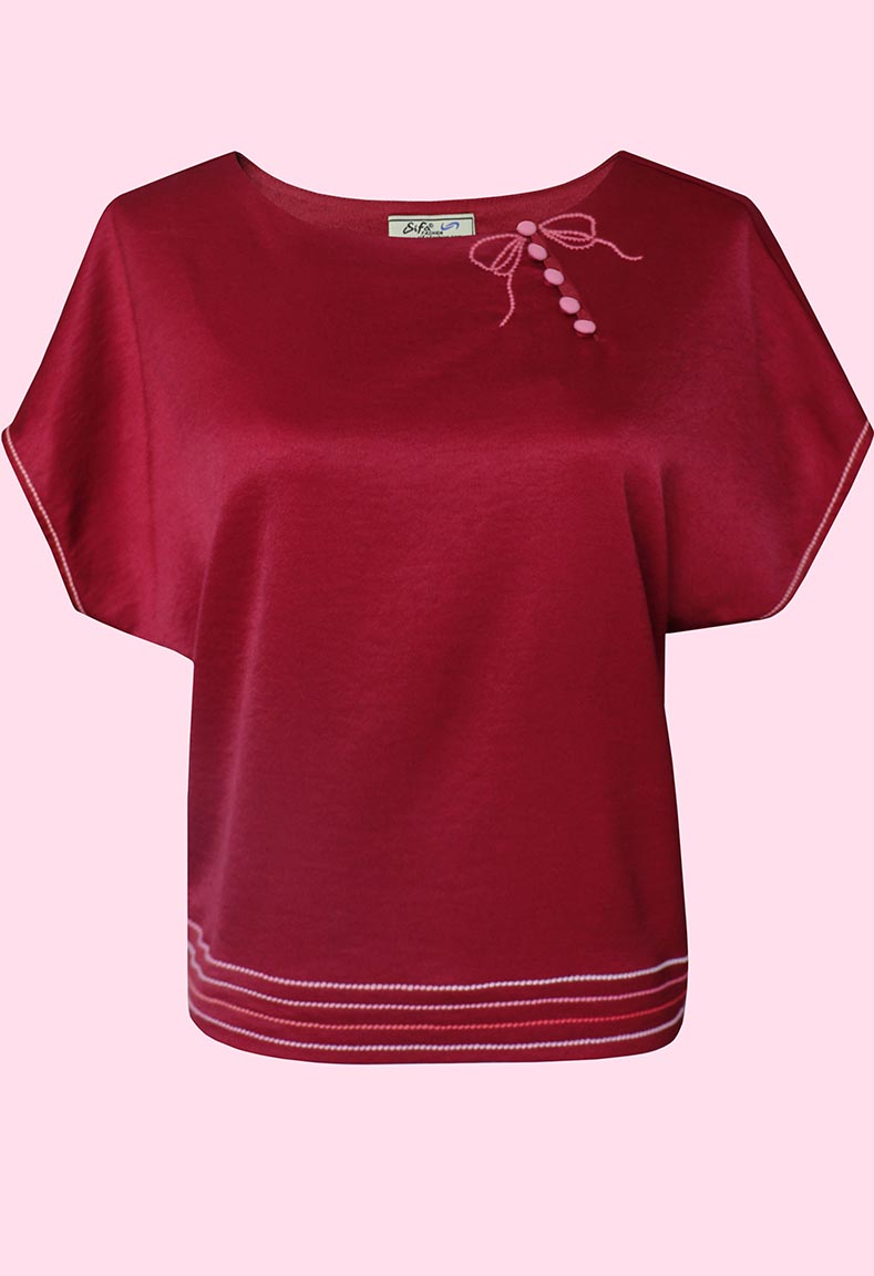 MÔ TẢ SẢN PHẨM: Áo cổ thuyền cách điệu thêu nơ, đính nút xinh, tay liền, lai dằn chỉ 3D