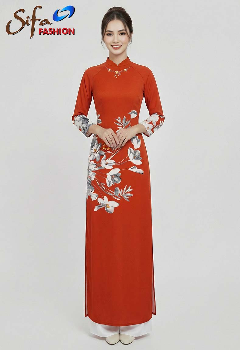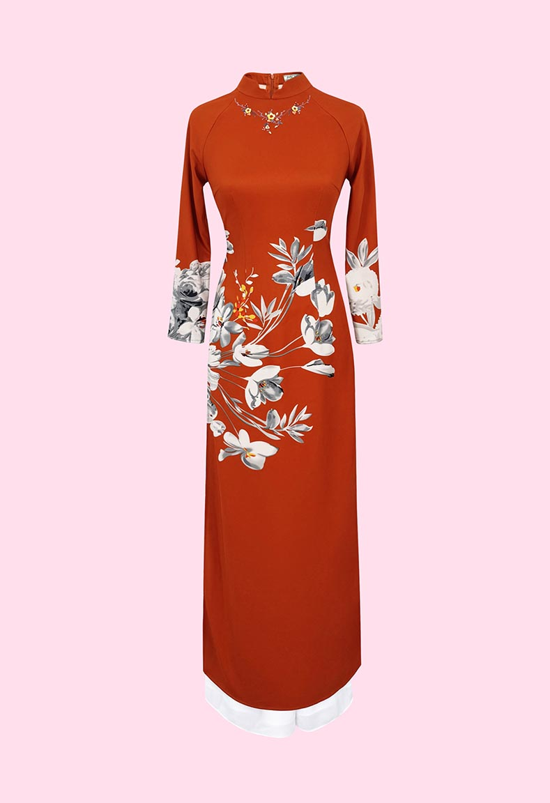 MÔ TẢ SẢN PHẨM: Áo dài cổ truyền thống lượn, thêu hoa cách điệu, tay dài.