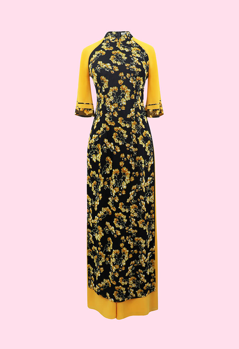 MÔ TẢ SẢN PHẨM: Áo dài cổ truyền thống, tà 2 lớp, tay lở loe phối thắt nơ điệu đà.