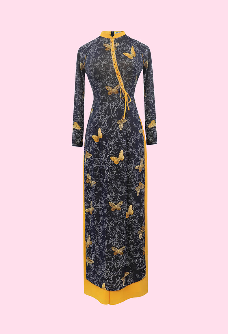 MÔ TẢ SẢN PHẨM: Áo dài cổ truyền thống, tay dài, tà 2 lớp. Thân áo phối ren cột nơ duyên dáng.
