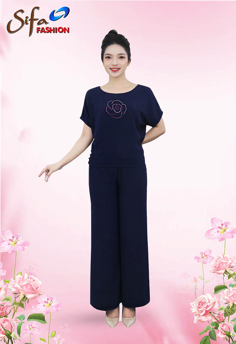 MÔ TẢ SẢN PHẨM: Áo cổ tròn tay liền, thêu đắp hoa kết nút hông.